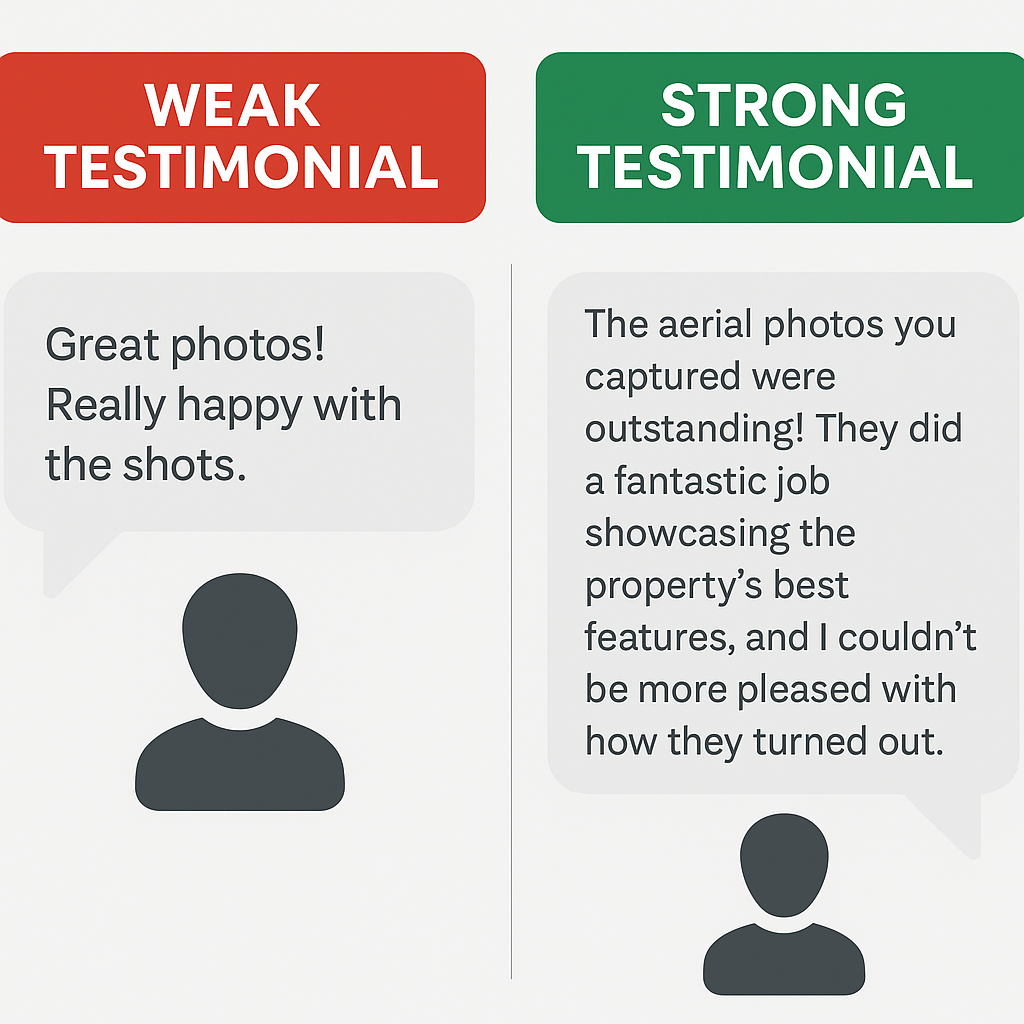 Teach students how to collect powerful testimonials, use them effectively, and build long-term credibility in a competitive drone services market.