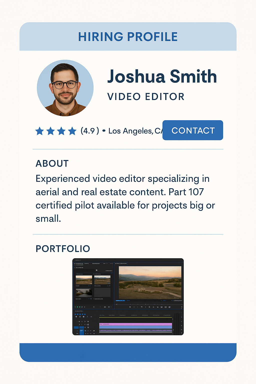 Screenshot or mockup of a hiring profile or freelance portfolio