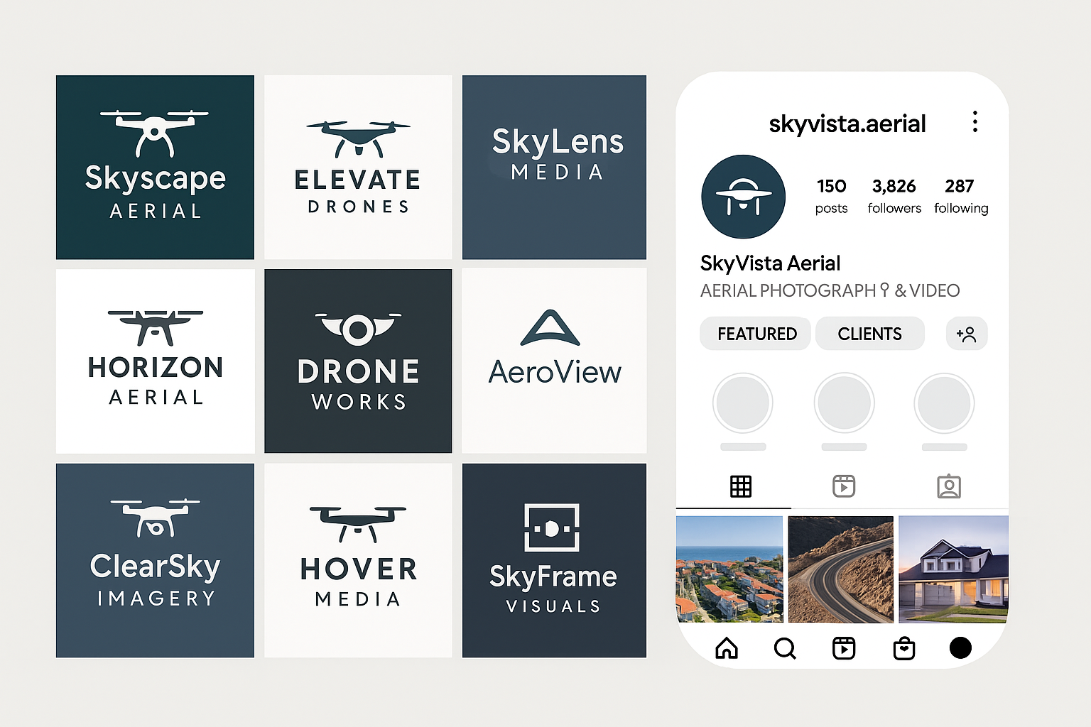 Logo grid mockup + branded social profile preview